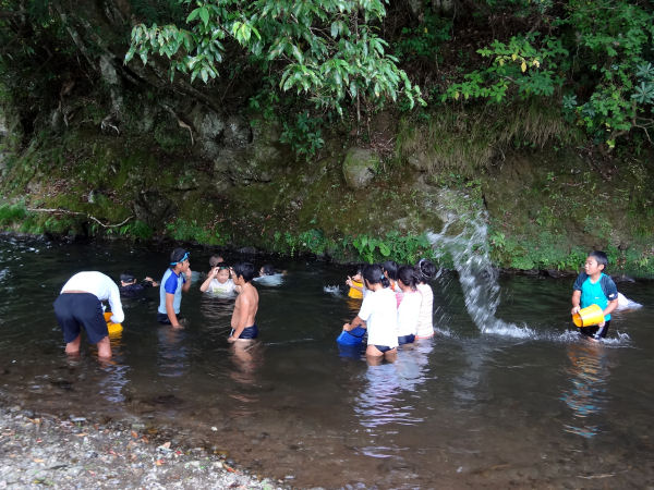 - 町内を流れる那賀川では、松崎小学校5年生の生徒たちが川遊びをしていました。
