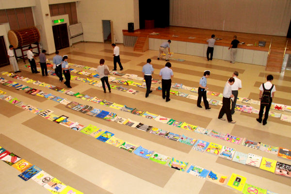 - 環境センター文化ホールでは、町内の小・中学生が夏休みに描いた交通安全ポスターの審査が行われました。