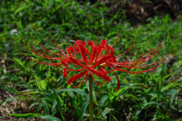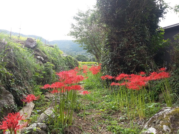 - 石部の棚田では、彼岸花の赤い花が見頃を向かえています。