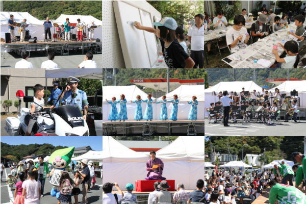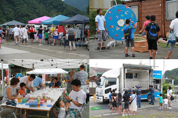 - 松崎港周辺では、第19回みなとでみんなと「海のピカ市」が開催されていました。会場では、フリーマーケットや町内外のバンドによるライブ、地震体験車、光る泥団子づくり等が行われ、多くの来場者で賑わっていました。