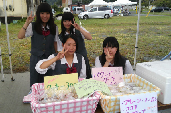 - 同じく「海のピカ市」の会場では、松崎高校の生徒たちがジオに関連したお菓子のアンケートのお願いや、自分たちで作ったお菓子の販売をしていました。