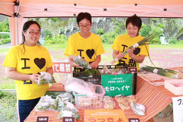 - 石部区の旧三浦幼稚園前駐車場では、石部こらっしゃい会と常葉大学の学生たちが共同で「青空マルシェ」を開催していました。「青空マルシェ」は、毎月第1日曜日の朝9時から正午まで開催し、地場産品を販売しています。