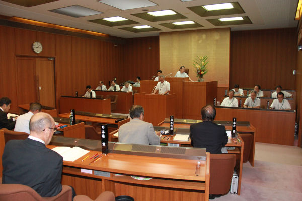 - 役場議場では、松崎町議会第3回定例会が開会されました。初日となる今日は、町長の行政報告や一般質問が行われました。