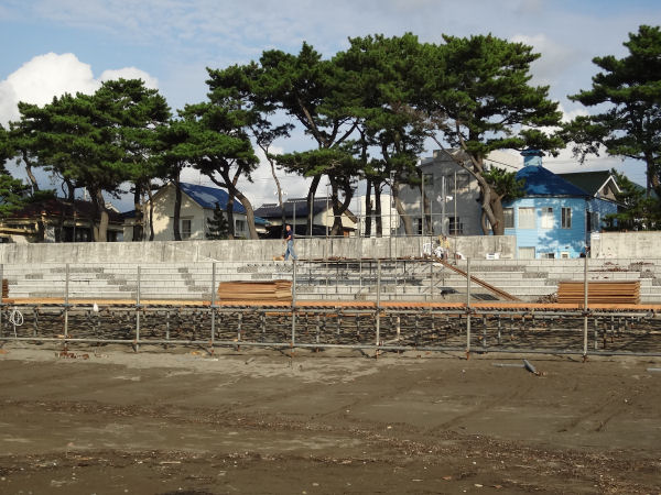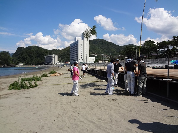 - 松崎海岸では、13日(土)に開催される第15回伊豆半島太鼓フェスティバルの準備が進んでいます。