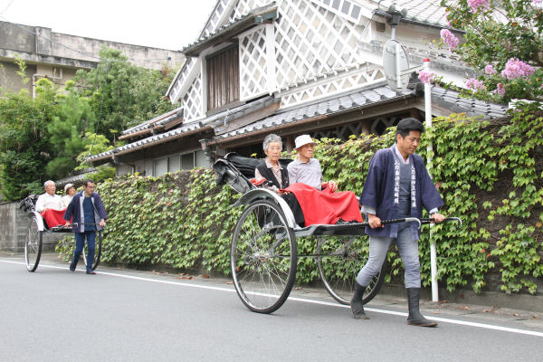 - 人力車伊豆松崎組では、江奈地区の敬老の日の行事へ参加する方の中から希望者をご自宅から会場まで人力車でお送りしました。