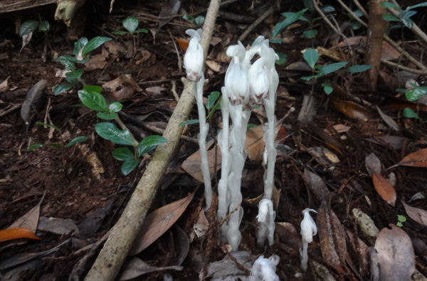 - 長者ヶ原では、湿った木陰にギンリョウソウが顔を出し始めました。