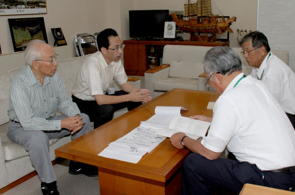 - 松崎古文書研究会の方が、古文書の解読が進んだため、その報告に町長を訪問しました。