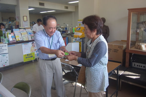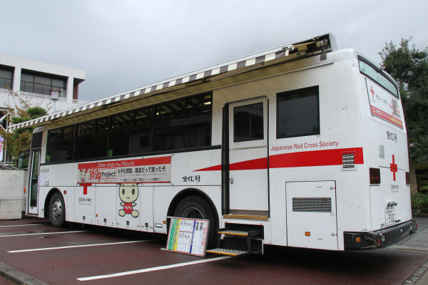 - 役場正面玄関前の駐車場では、献血が行われました。ご協力いただいた皆様、ありがとうございました。