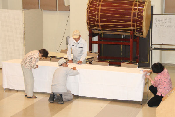 - 環境改善センター文化ホールでは、明日開催されるさんさん松崎福祉大会の準備が行われました