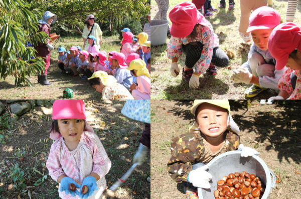 - 松崎幼稚園中川園の園児たちが栗拾いを体験しました。