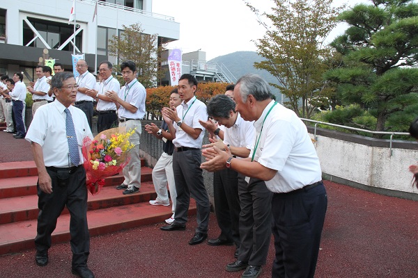 - 環境改善センター、文化ホールにて藤池教育長の退任式が行われました。