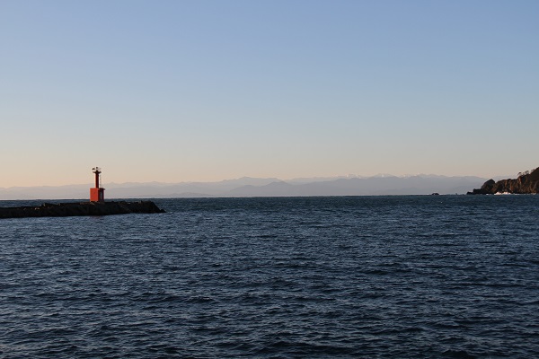 - 今日は風も穏やかで空気も澄んでおり、松崎港からは対岸の山々まではっきりと見ることが出来ました。