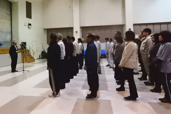- 年末年始の休みを終えて、松崎町役場は今日から通常業務となります。今朝は、環境センター文化ホールにて、仕事始め式が行われました。