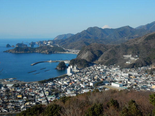 - 今日の松崎は、青空の広がる1日となりました。町を眺める牛原山からは、山の向こうに富士山を見ることができました。