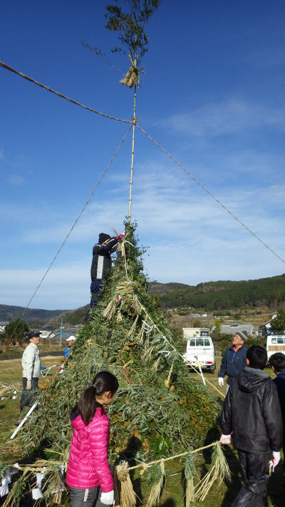 - 昨日の話題ですが、峰地区では、区民と子供会が協力して賽の神づくりが行われました。火入れは10日(土)午前7時を予定しています。