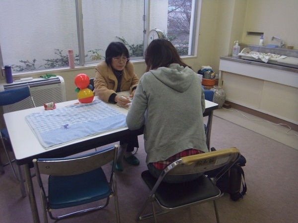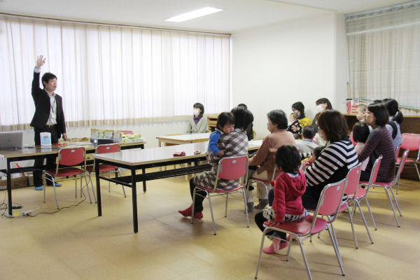 - 福祉センターでは、12月と1月生まれで1歳になる幼児を対象にお誕生相談が行われました。参加したお母さんたちは、栄養や歯科についての相談や1年間の子育てについて、互いに話し合いました。