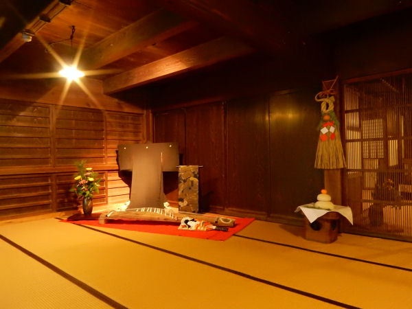- 無料の休憩所として開放されている伊豆文邸では、琴が飾られており、厳かなお正月の雰囲気を味わうことができます。