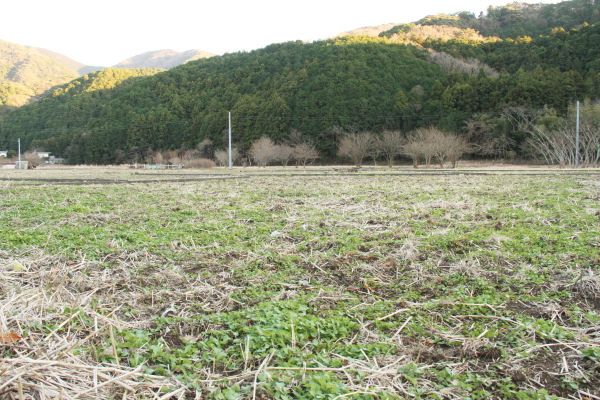 - 南郷地区鮎川では、11月に松崎中学校の生徒がホタルボランティア活動の一環で蒔いた菜の花の種が芽を出していました。