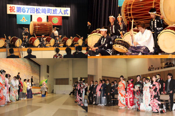 - 式典終了後は、第2部「はたち祭」が行われ、伊豆松崎牛原太鼓の演奏、ふるさと松崎をテーマとしたクイズが行われました。