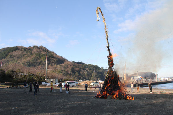 - 今朝、松崎海岸において、五穀豊穣や無病息災を願い、どんど焼きが行われました。