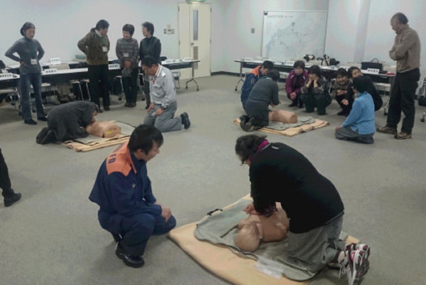 - 民生委員児童委員協議会の定例会にて、救急法講習が行われ、西伊豆消防署職員より、人工呼吸、心臓マッサージ、AEDの取り扱いについて講習を受けました。