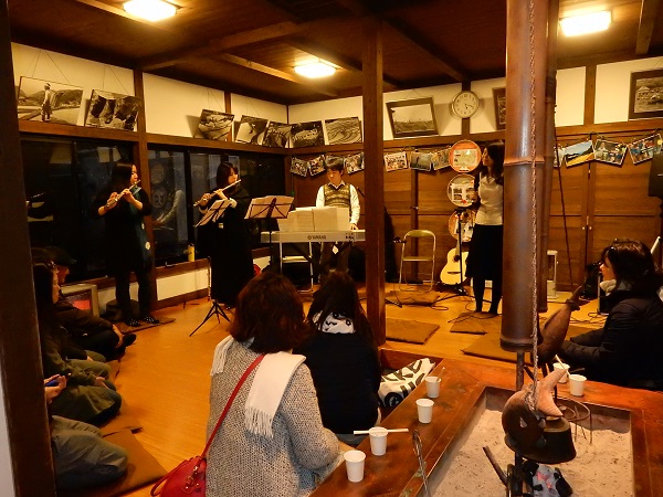 - 昨日の話題ですが、石部棚田の交流棟では、石部の灯り(イルミネーション)に合わせ、棚田オーナー有志によるミニコンサートが行われました。