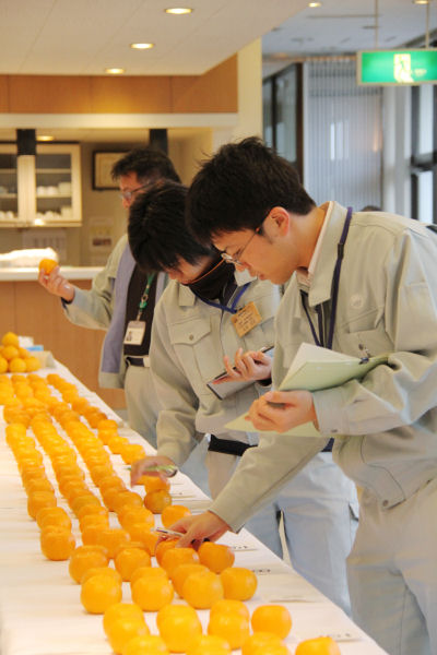 - 環境センターロビーでは、松崎町の特産品であるポンカンの品評会が開催されました。今日は、出品されたポンカンの審査が行われました。表彰式は明日行われます。