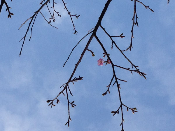 - 雲見区にある河津桜が、花を1輪咲かせていました。
