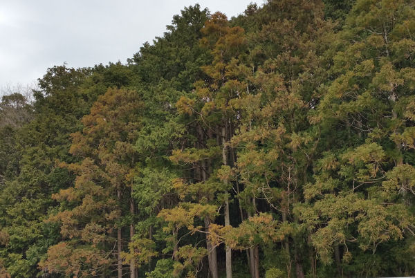- もうすぐ花粉の季節となるからでしょうか。町内では、杉の木がオレンジ色に色づき始めています。