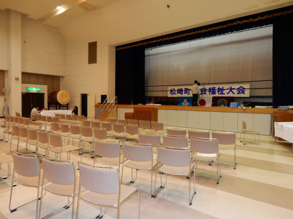 - 明日、環境センター文化ホールにて、平成26年度松崎町社会福祉大会が開催されます。今日はその会場準備が行われました。