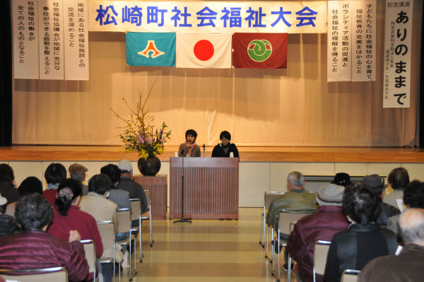 - 環境センター文化ホールでは、平成26年度松崎町社会福祉大会が開催されました。式典にて表彰が行われた後、記念講演が行われました。