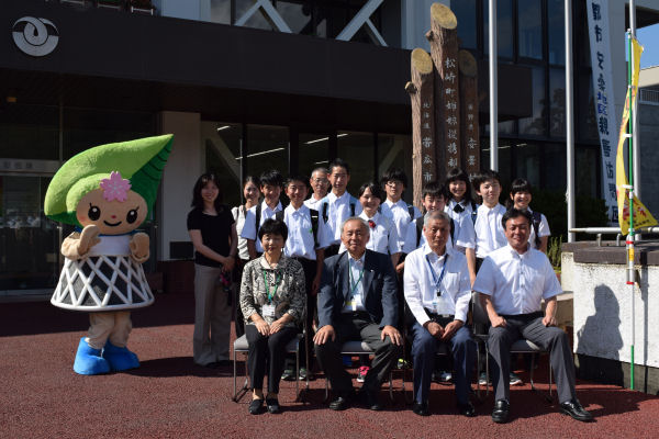 - 役場応接室では、29日(水)から開拓姉妹都市の北海道帯広市を訪問する松崎小学校の生徒代表2人が、町長に出発前の挨拶に訪れ、抱負を語りました。生徒たちは、2泊3日の日程で帯広市を訪問します。