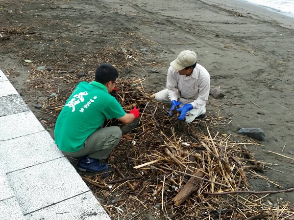 - 本日早朝より、台風の影響で海岸に打ち上げらた漂流物の清掃活動が行われました。