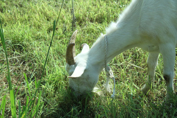 - 松崎町まちづくりやろうじゃ協議会で試験飼育しているヤギです。山の中から海の近くに場所を移し、今日も元気に草を食べています。