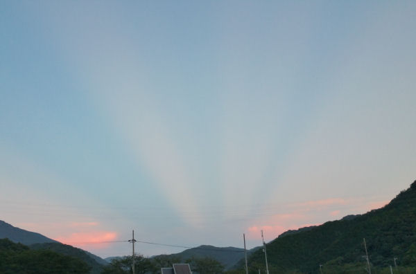 - 夕方、東の空がうっすらとですが放射状に白くなっていました。