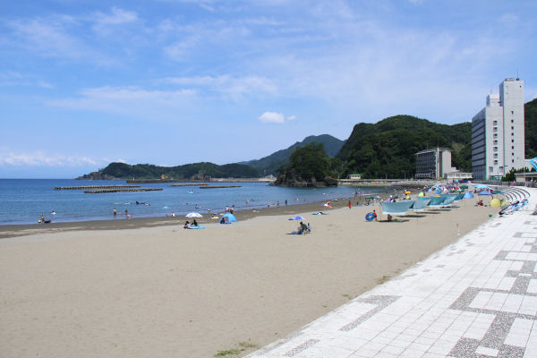 - 町内の海水浴場では、多くの方が海水浴を楽しんでいます。