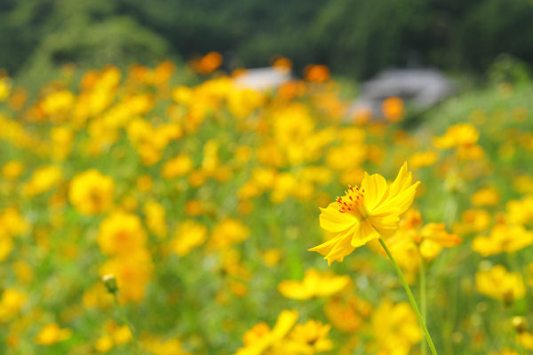 - キバナコスモスが鮮やかな黄色の花を咲かせています。