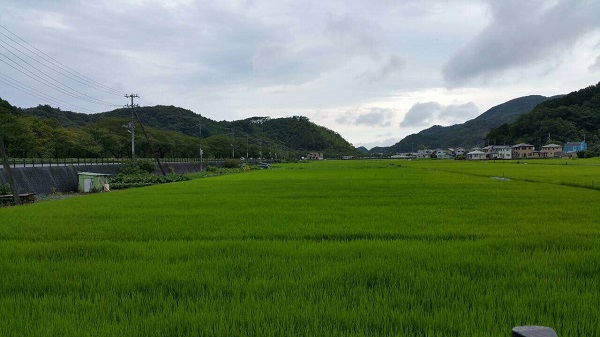 - 那賀耕地の様子です。昨日から降り続いた雨も午後には上がり、西の空がうっすらと明るくなってきています。