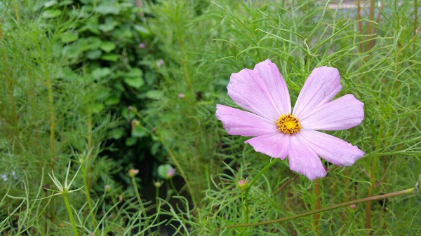 - 道端にはコスモスの花が咲いていました。