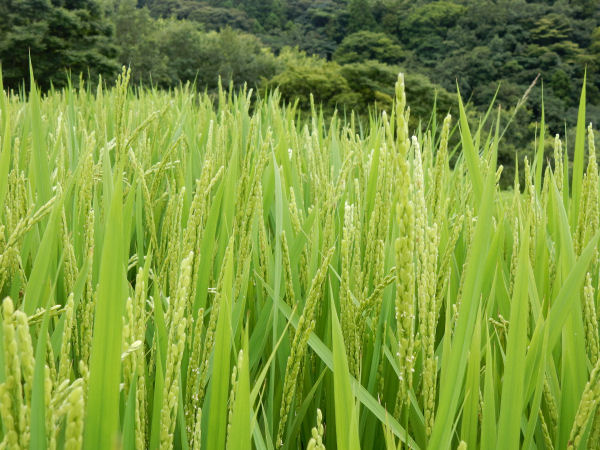- 町内の田んぼでは、夏の暑い日差しにも負けず順調に稲穂が育っています。