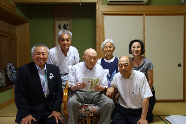 - 本日、100歳を迎えた福本佐久平さんの自宅に齋藤町長が訪問し、お祝いしました。福本さんは町長からの激励に笑顔で答えていました。
