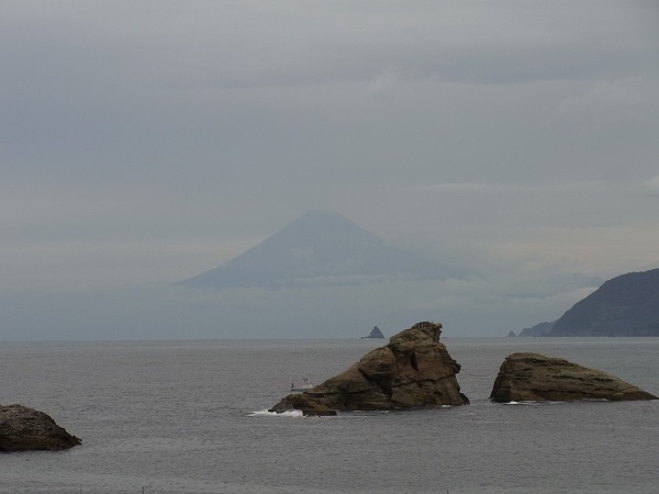 - 雲見海岸からはうっすらと富士山を見ることができました。夏はあまり富士山を見ることができませんが、ここ数日は雨の影響で、雲の隙間から富士山を見ることができます。