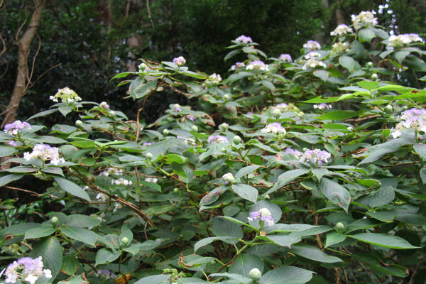 - 町内では、タマアジサイが紫色の花を咲かせています。