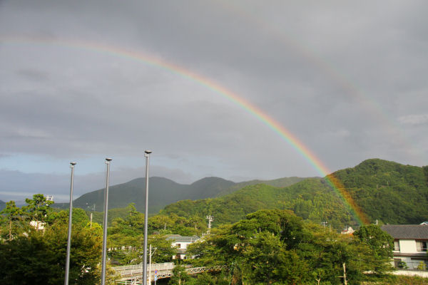 - 夕方、役場前にて、虹が二重にかかっていました。