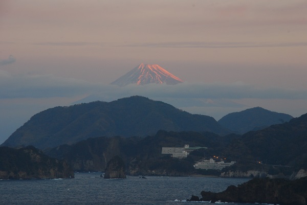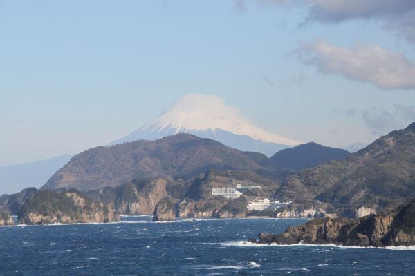 - 昨日に続き、今日も強い風の吹く天気となりました。風で雲が流されるためか、海岸線からは雪をかぶったきれいな富士山を見ることができました。