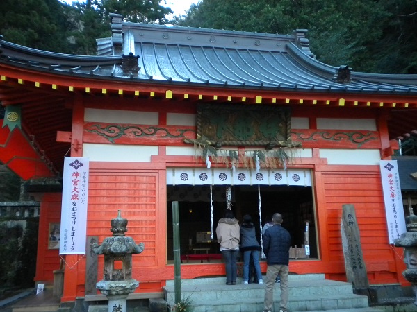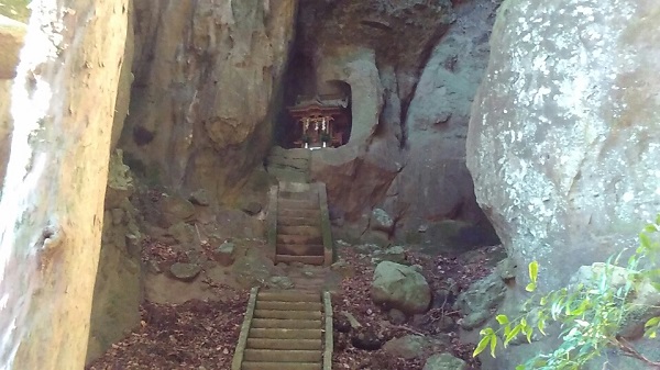 - 道部地区にある岩戸天満宮です。断崖をくり抜いた祠には、祭神の菅原道真がまつられています。ここでも神秘的にひっそりと新年を迎えました。