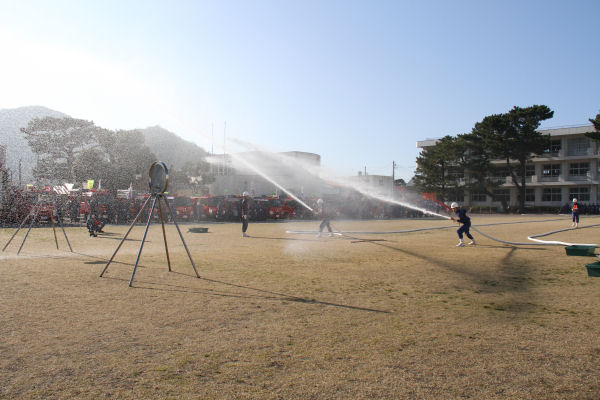 - 松崎小学校グラウンドでは、平成28年松崎町消防団出初式が行われました。式典では特別功績章等の表彰や、消防活動協力者に町長感謝状の贈呈、操法披露が行われました。