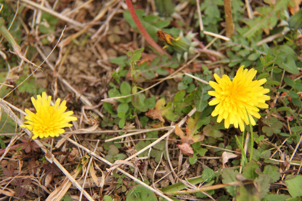 - 暖冬の影響からか、町内では春先に咲く花を見かけることがあります。今日は、タンポポの花が咲いているのを見つけました。