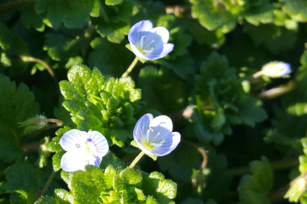 - 道の脇やあぜ道では、早春に咲くオオイヌノフグリが早くも花を咲かせていました。青く小さい花がとても愛らしいです。