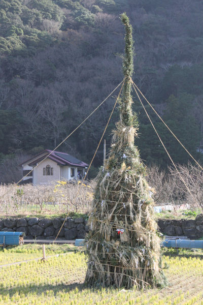 - 道部地区内の田んぼに作られたさいの神です。道部地区では、9日(土)6時30分からどんど焼きが行われます。